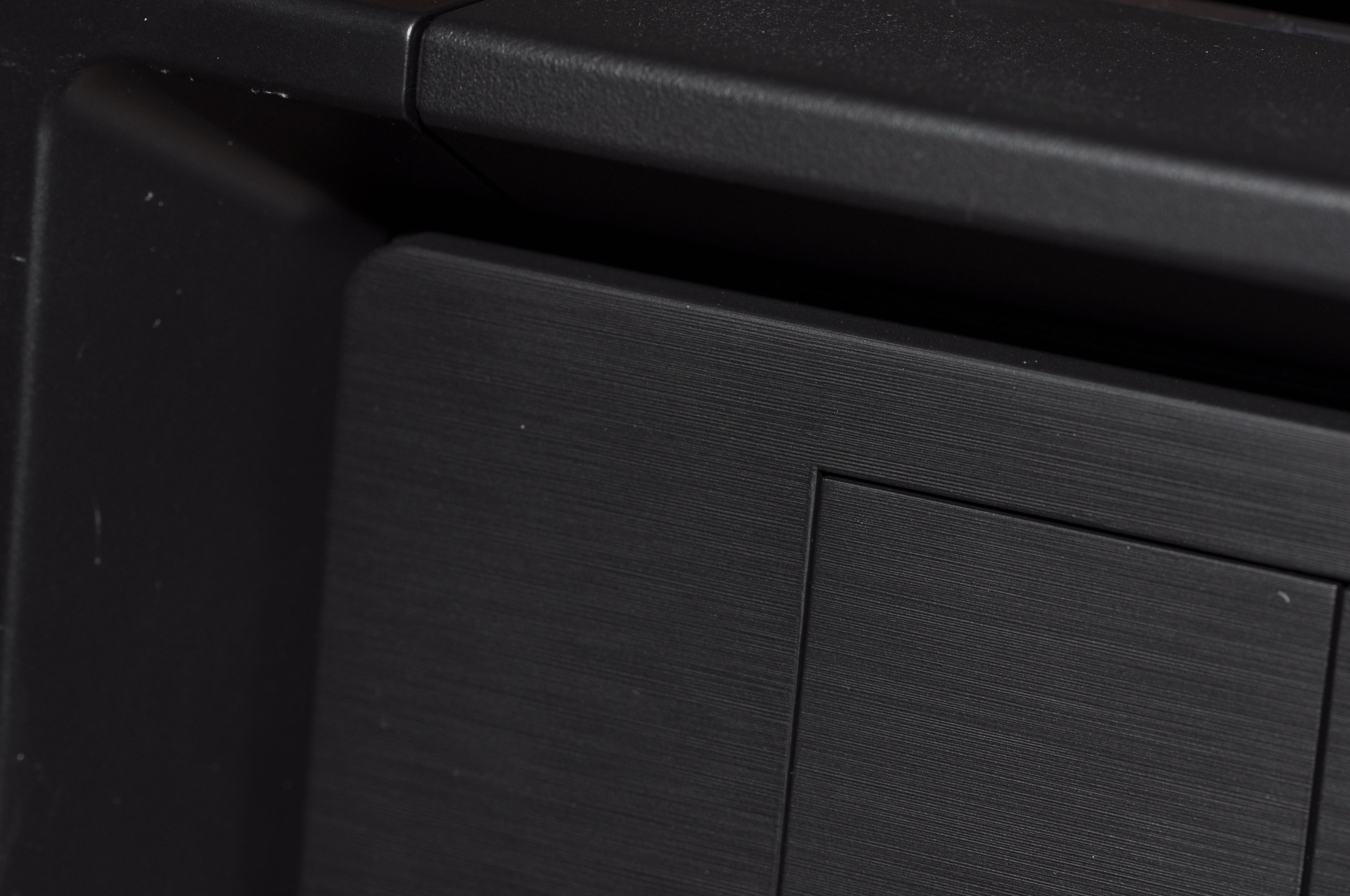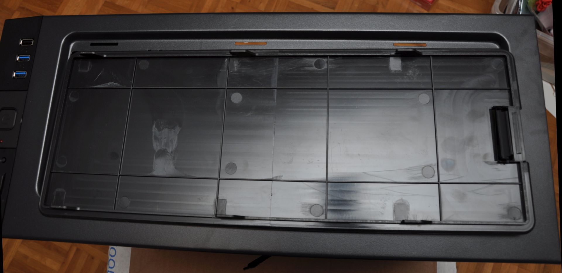 Hier der Materialmix am Frontpanel, Links der Deckel, in der Mitte die Oberseite des Cases, Rechts dann das Frontpanel.