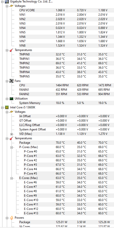 Ich wolltn Thema zum UV beim 13600k eröffnen und mal fragen auf was für Werte ihr kommt, welcher Kühler verbaut ist und auf was für einem Brett um mal ganz grob schnüffeln zu können, wie es bei anderen ausschaut bzgl. Temps und Spannung.