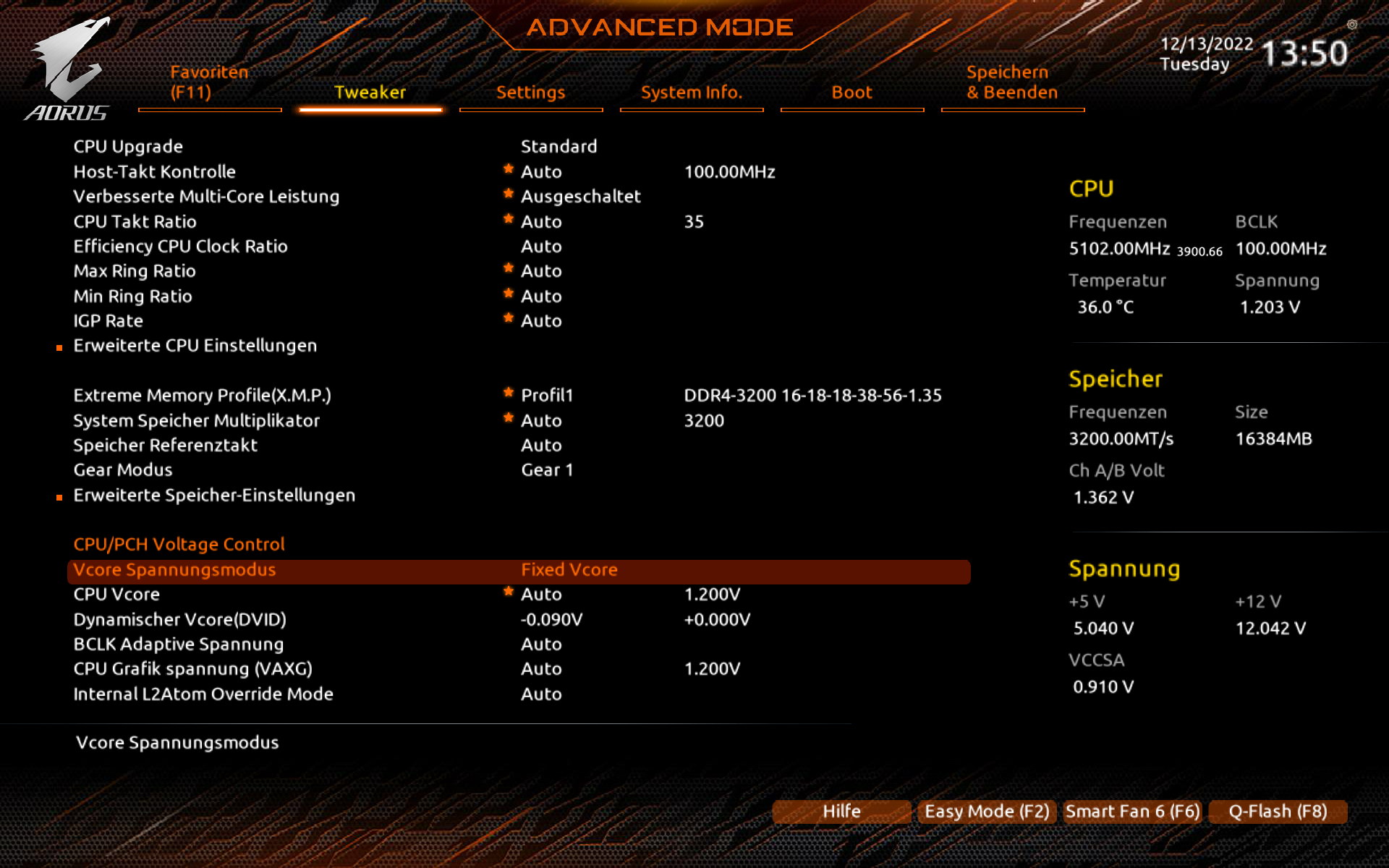 Vcore Spannung wollte der da im XTU gar nicht erst machen, trotz ausgeschalteter UV Protection.