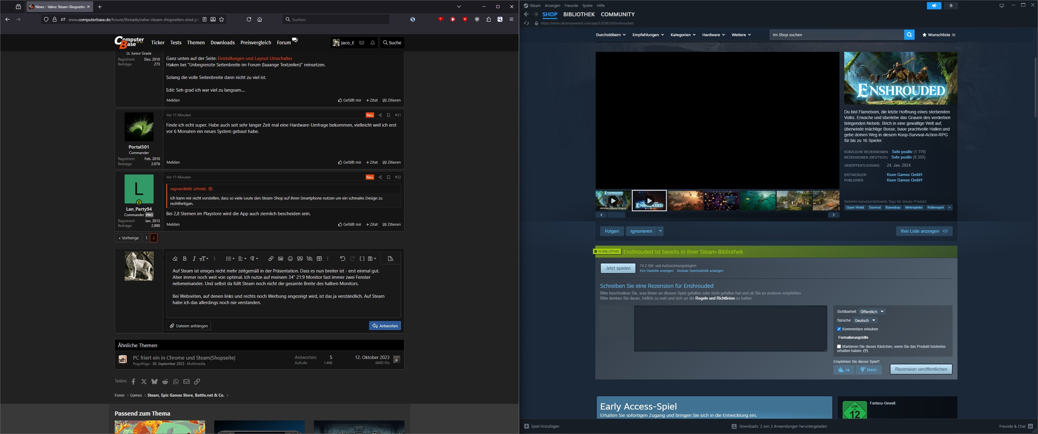 Aber immer noch weit von optimal. Ich nutze auf meinem 34" 21:9 Monitor fast immer zwei Fenster nebeneinander. Und selbst da füllt Steam noch nicht die gesamte Breite des halben Monitors.