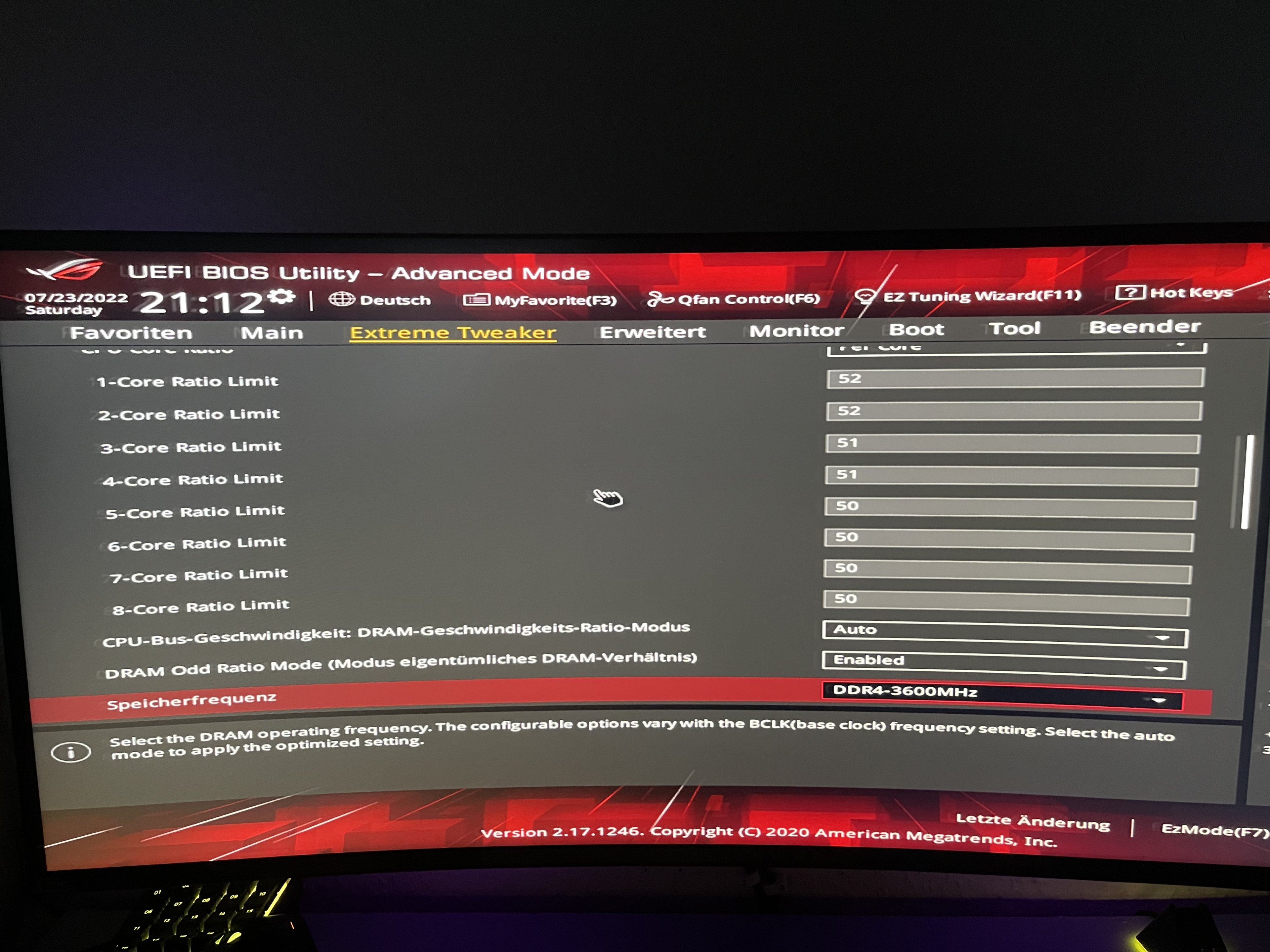 Ich habe versucht den RAM im BIOS einszustellen, aber jede Änderung führt zu einem boot failure und ich lande wieder in den Werkseinstellungen.