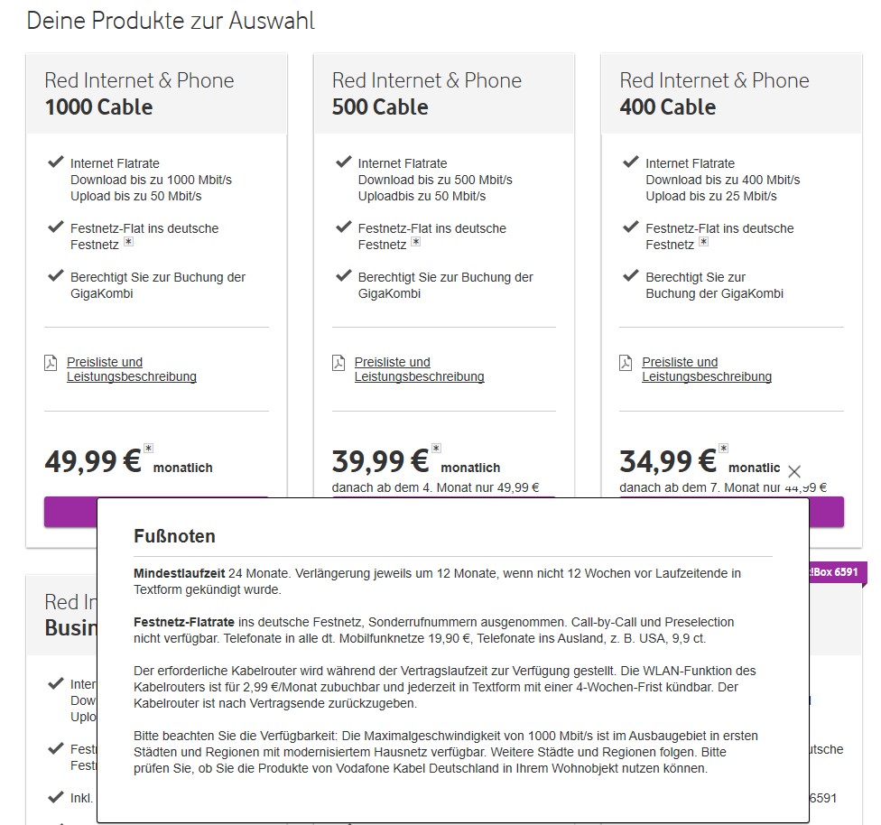 Keine Ahnung, wer "100€ latzen" muss. Ich zahle für Vodafone Internet&Phone 500 Cable (500/50 Mbit/s) im Monat 49,90 EUR. 1000/50 kostet 69,90 im Monat, macht für mich aber keinen Sinn.