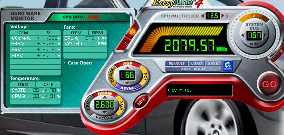 Bei dem Mainboard war die Software EasyTune 4 dabei, mit der ich den FSB ändern, Infos über CPU ablesen und auch die Voltage von (CPU), RAM und Graka einstellen kann.