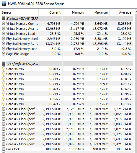 Laut HW Info und CPU-Z gehen Maximal 5 von 7 Kernen auf 2-3Ghz und die anderen 2 bleiben bei 4.3 Ghz.