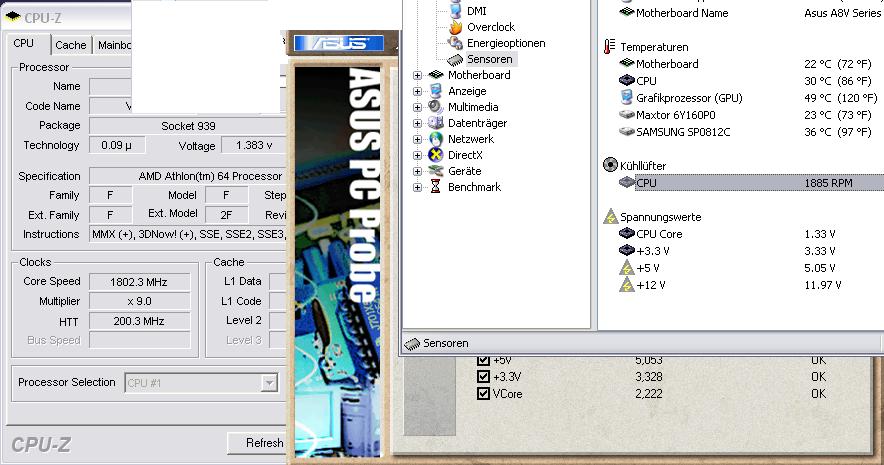 Tja! Wie immer wieder das gute alte A8V! Bisher dachte ich eigentlich immer, dass das Board nur die Temparatur grob einschätzt un dann weitergibt! Aber jetzt auchnoch die Voltage