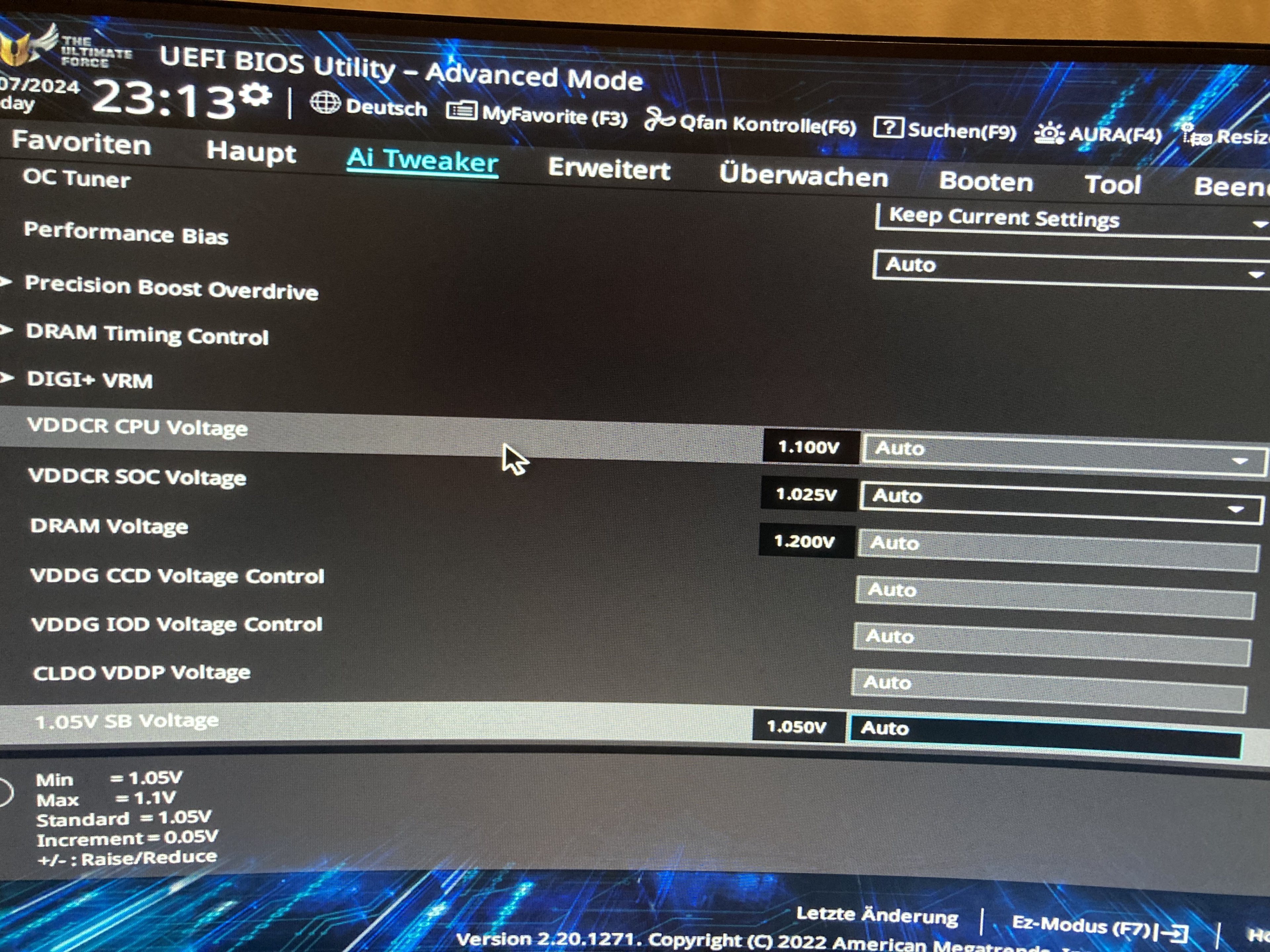 Heute habe ich deswegen mein BIOS geladen und gesehen, das dort warum auch immer, die VDDCR CPU Voltage auf 1.656V war in roter Schrift. Das habe ich bisher noch nie gesehen als ich im BIOS war und dann habe ich alles zurückgesetzt und nun kriege ich den Wert 1,569V in weißer Schrift.