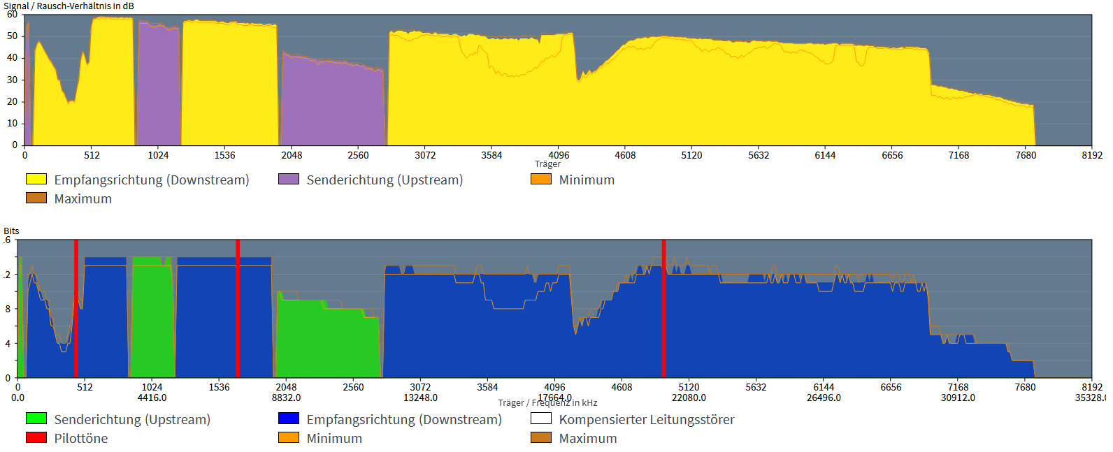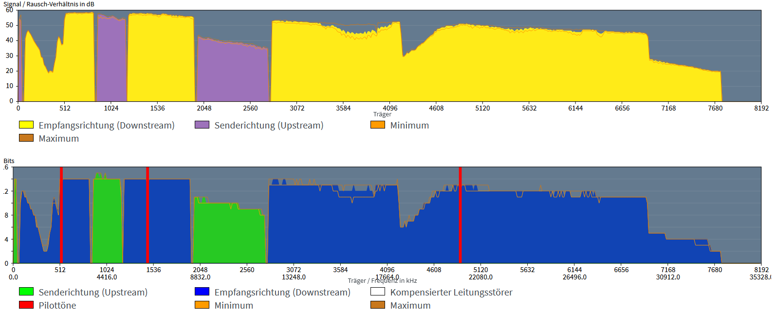 Offensichtlich wurde bei mir im Haus auch die falsche Endleitung verlegt. Aber wie kann es sein, dass die Fehler für 2 Stunden nahezu komplett verschwunden sind und dann plötzlich wieder auftreten? Gibt es vielleicht eine Störquelle im Haus, die zufällig deaktiviert war nachdem ich die TAE neu verkabelt hatte? Um es gleich vorwegzunehmen: Ich selbst verwende zumindest kein Powerline.