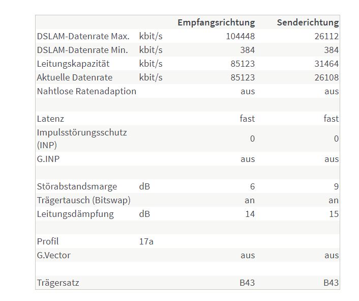 - andere Telefondose im Haus genutzt. Fritz!Box synchronisiert höher aber auch hier = selbes Problem