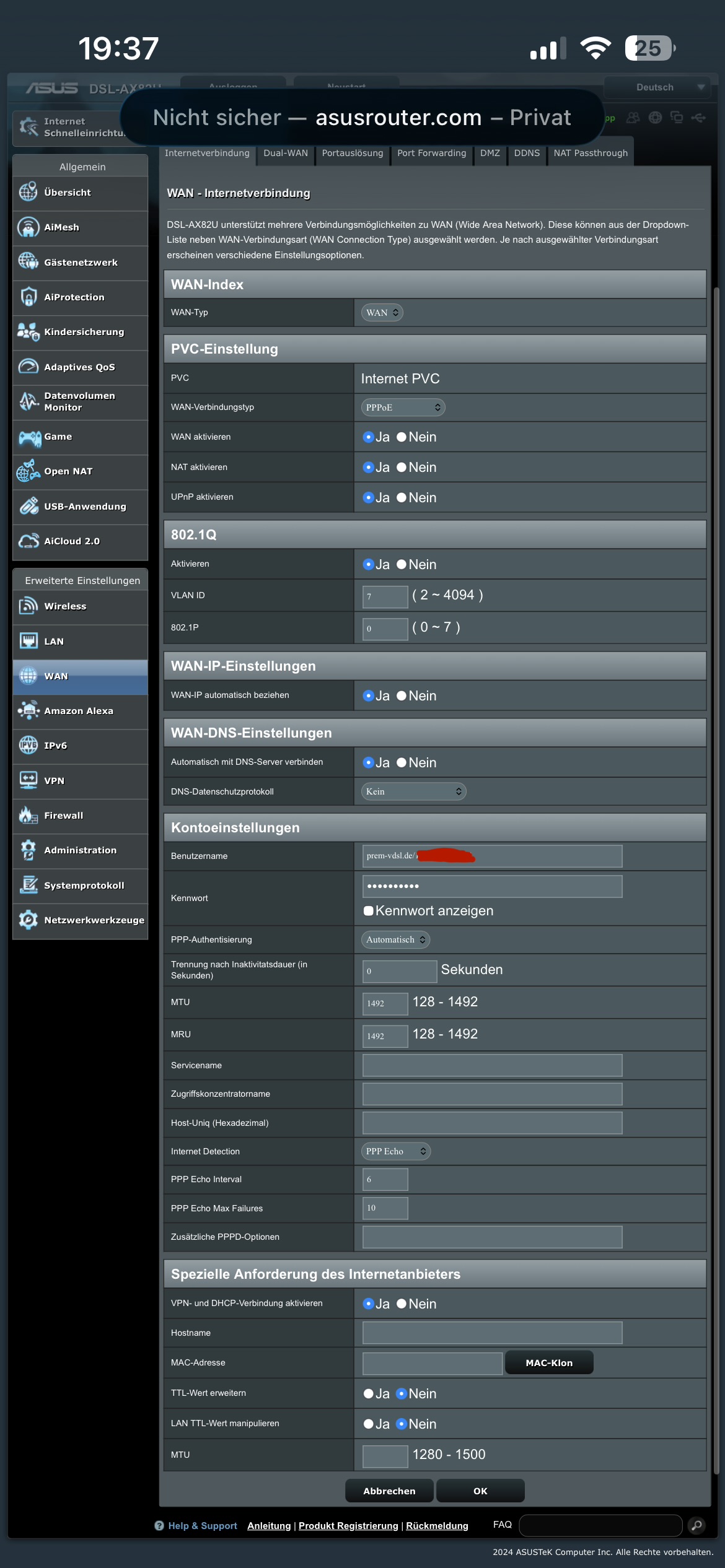 ich bin nun frisch in meine Erste Wohnung gezogen und bekomme ums verrecken meinen Asus dsl-Ax82u nicht eingerichtet.