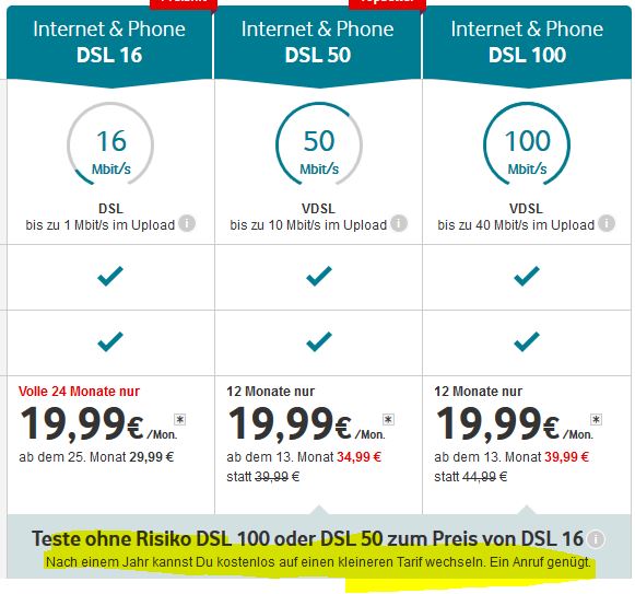 In der Hotline von 1&1 wurde mir nach einer Verfügbarkeitsprüfung zugesichert, dass ich die gewünschten 100Mbit/s erhalten würde.