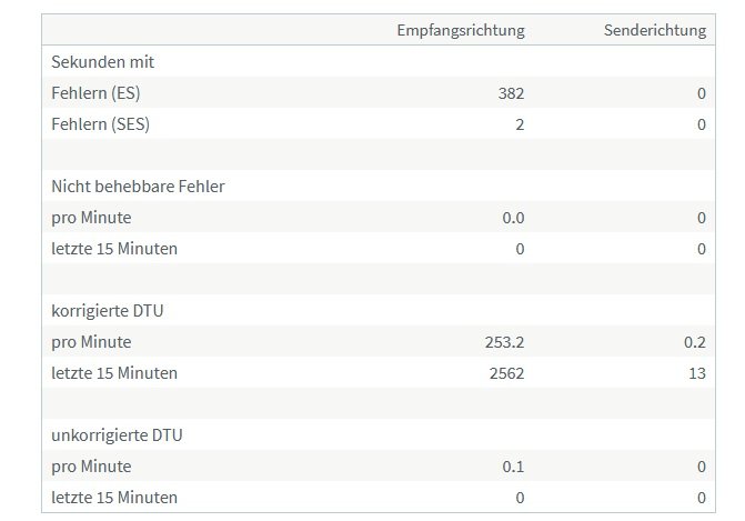 Seit geraumer Zeit steht bei den korregierten DTU meist ein wert um die 250 - 300, sporadisch also an unterschiedlichen Tagen und Uhrzeit schießen die unkorregierten DTU Werte und die nicht behebaren Fehler durch die Decke, dies führt zwar nicht zu einen Verbindungsabbruch jedoch geht dabei die Downloadrate in den Keller.