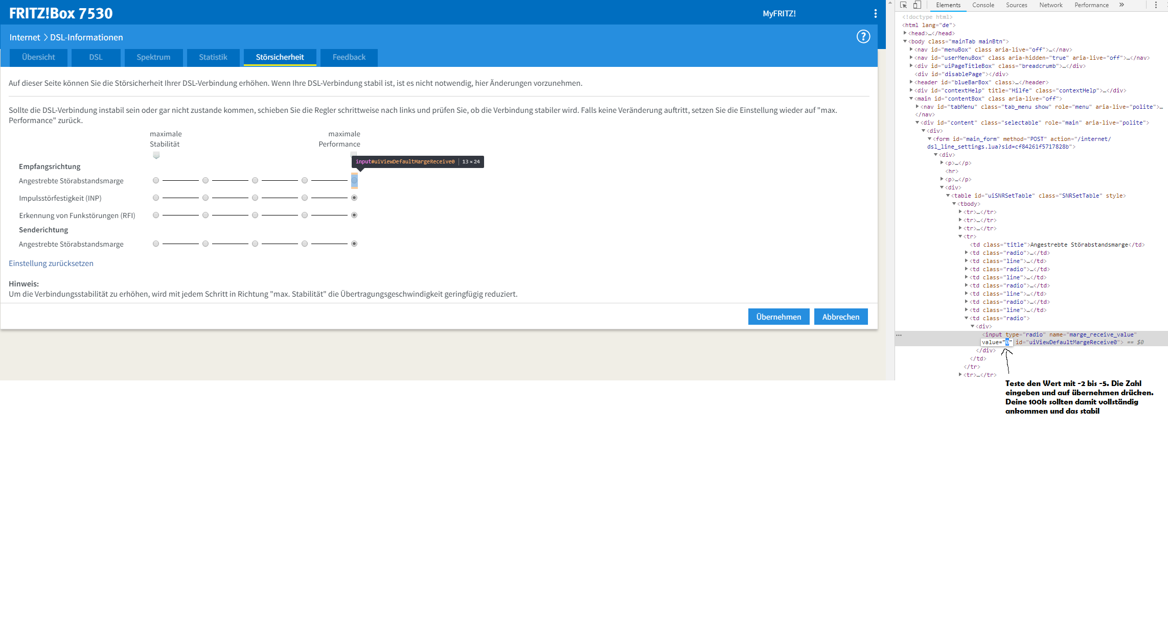 Ich meine, eigentlich könnte es mir wurscht sein, mein VDSL hat 137mbit zu 49mbit Kapazität und läuft mit vollen 109/42 seit 98 Tagen ohne Abbruch, aber mein Helfersyndrom kommt bei sowas doch ab und zu zum Vorschein 😉 nimms nicht persönlich, ein Angriff sollte das jetzt nicht sein, aber du willst doch auch wissen, wo der Fehler liegt. Bringt ja auch nix wenn ich sag "Sekunde, ich bring deine Leitung wieder auf Vollgas" und ne Woche später geht der Spuk wieder los. Deine fritzbox hat dir den entscheidenden Tipp gegeben, ich dir die entsprechenden Punkte zum nachschauen, jetzt liegt es an dir 😉 alternativ natürlich 08003301000 und Fehlerbehebung Heimnetz für 80€ pauschal, dann wird es auch wieder gehen.