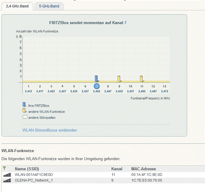 2,4-GHz-Frequenzband = 802.11 n+g und Kanal 7