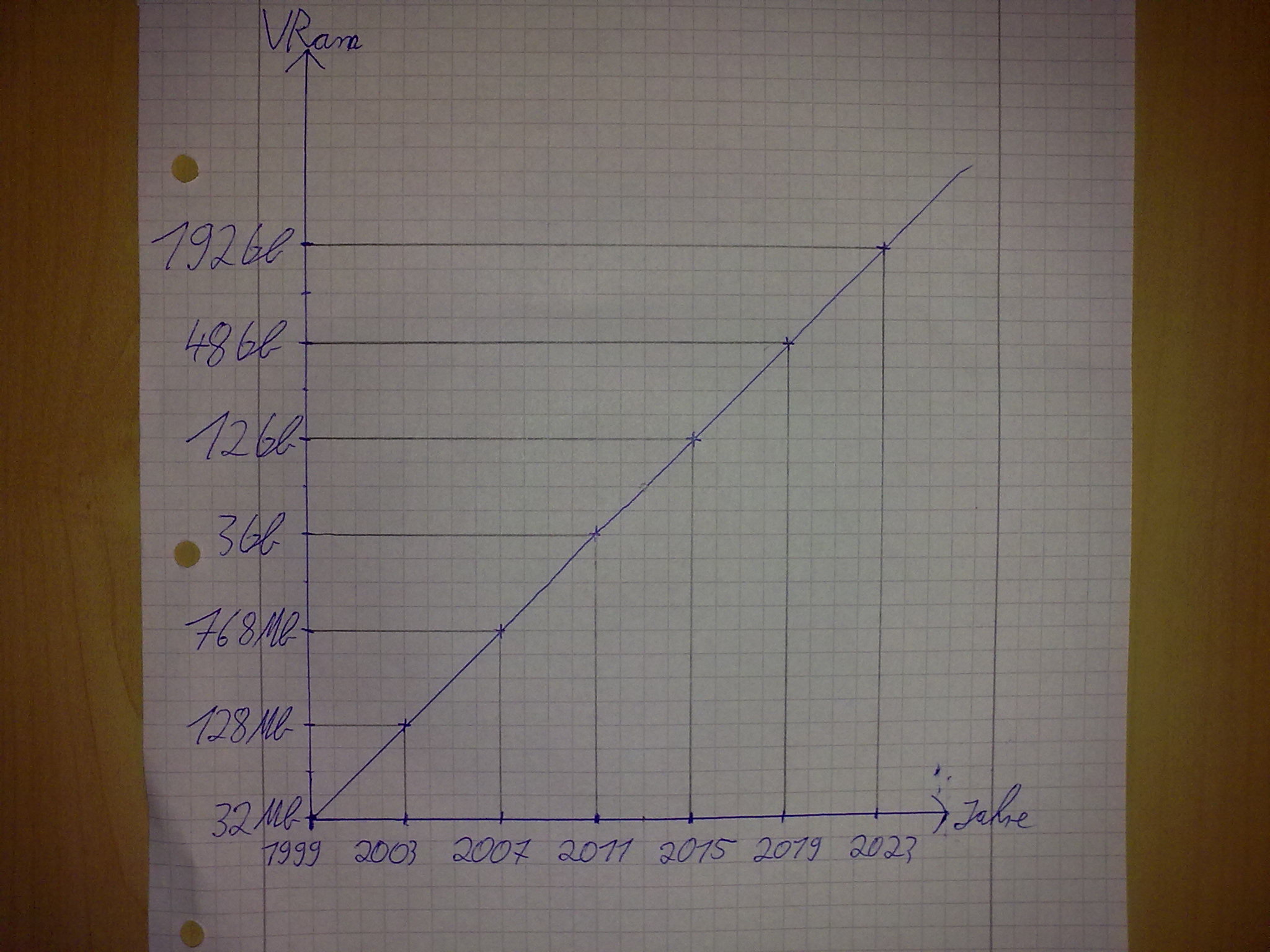 Wobei sicher bald auch wieder ein Punkt erreicht ist, an dem VRAM-Größe wieder in den Hintergrund rückt und für Jahre nur ein langsameres Wachstum stattfindet.