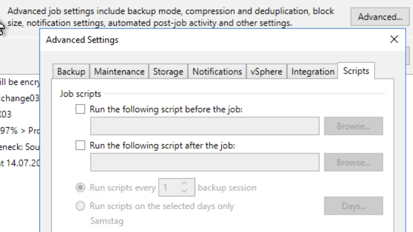 wir haben in der Firma aktuell das Problem, dass die Sicherung mit Veeam am Samstag ( Full Backup ) unsere Sharepoint-VM zum anhalten bringt. Wir wissen aktuell nicht woran das liegen könnte. In den Ereignissen bei VMWare steht nur das der Snapshot erstellt wird, dann auch wieder entfernt und 10 Minuten später das die Maschine angehalten wurde.