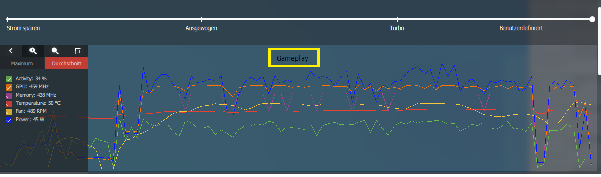 Die Einstellungen die im Screenshot zu sehen sind GPU Clock etc. sind aus einem empfohlenen Profil ausm Internet, ist aber egal was ich in der Radeon Software einstelle. Standard - Turbo - etc. Die Phänomene bleiben gleich.