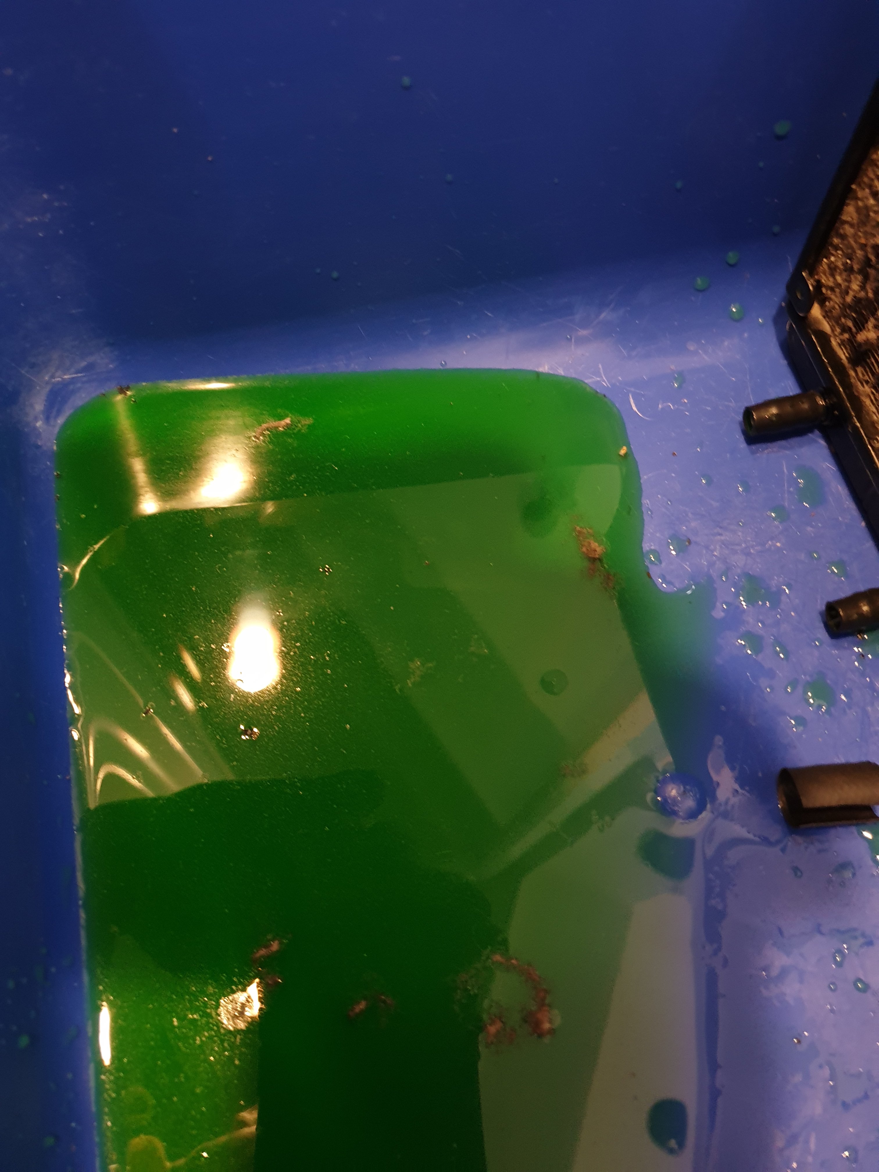 Vermutlich vertragen sich die Reste nicht, hoffe man kann einfach mehrere Liter Wasser (oder Wasser mit einem Lösemittel) durchspülen, indem man die WaKü Pumpe an einen Raspberry Pi oder das Mainboard anschließt und laufen lässt ohne die Grafikkarte einzubauen.