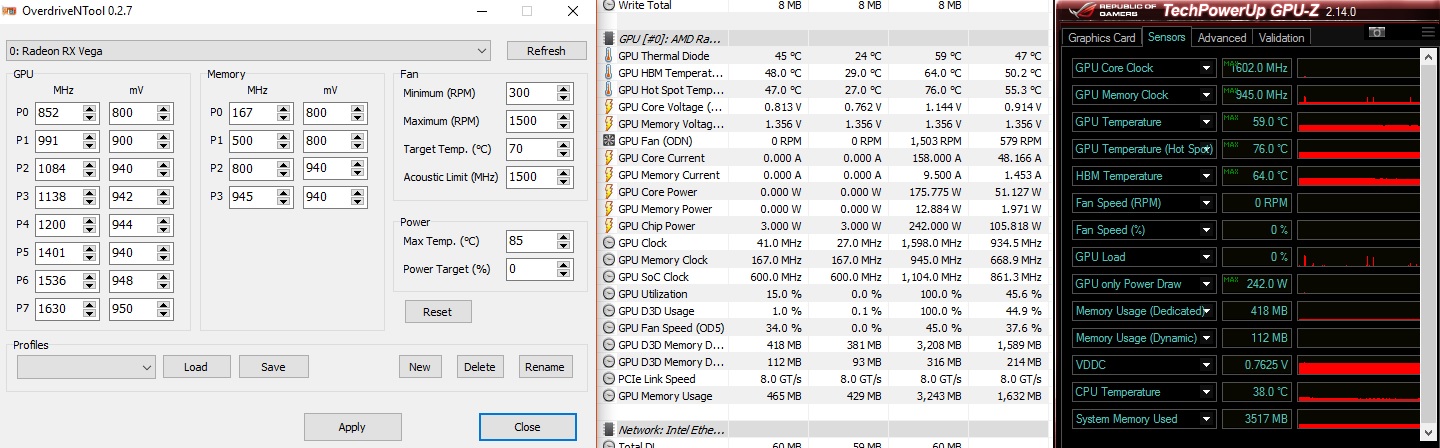 Bisher habe ich mit der Karte nicht viel gemacht. Hab im Wattman n bisschen rumgespielt, aber nichts Handfestes. Bevor die Frage aufkommt ich hab den zurückgesetzt bevor ich mit dem OC Tool gearbeitet habe