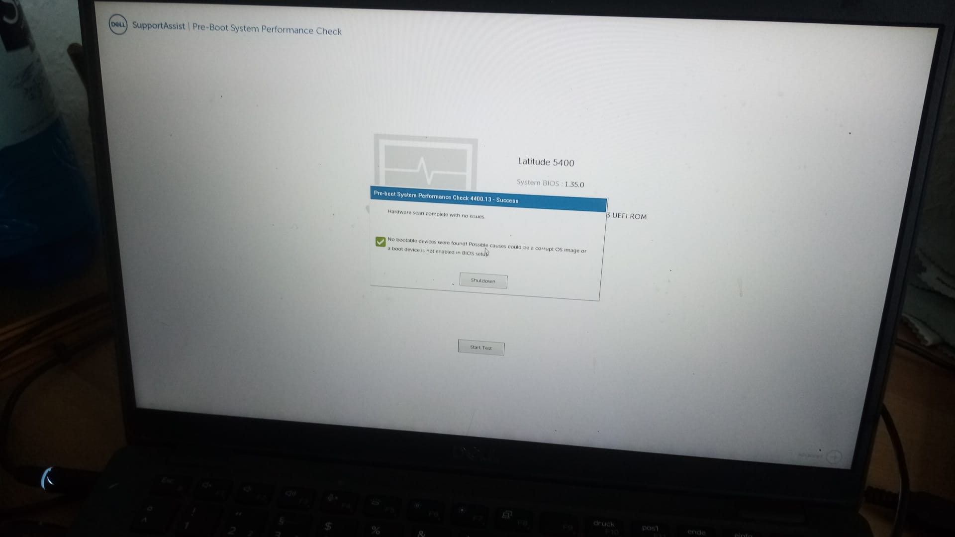 ok, stimmt, ist vllt. aber gar nicht notwendig, oben steht die Fehlermeldung. In der Mitte ist ein Button ok. Druecke ich die Enter Taste macht das Notebook anschliessend einen Hardware Pruefung. Das ist hier aber wohl nicht relevant?
