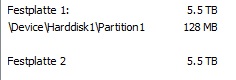 Die 128MB Partition sehe ich in der Datenträgerverwaltung nicht. Hier erscheint nur Festplatte 1 als online und Festplatte 2 als nicht initialisiert.