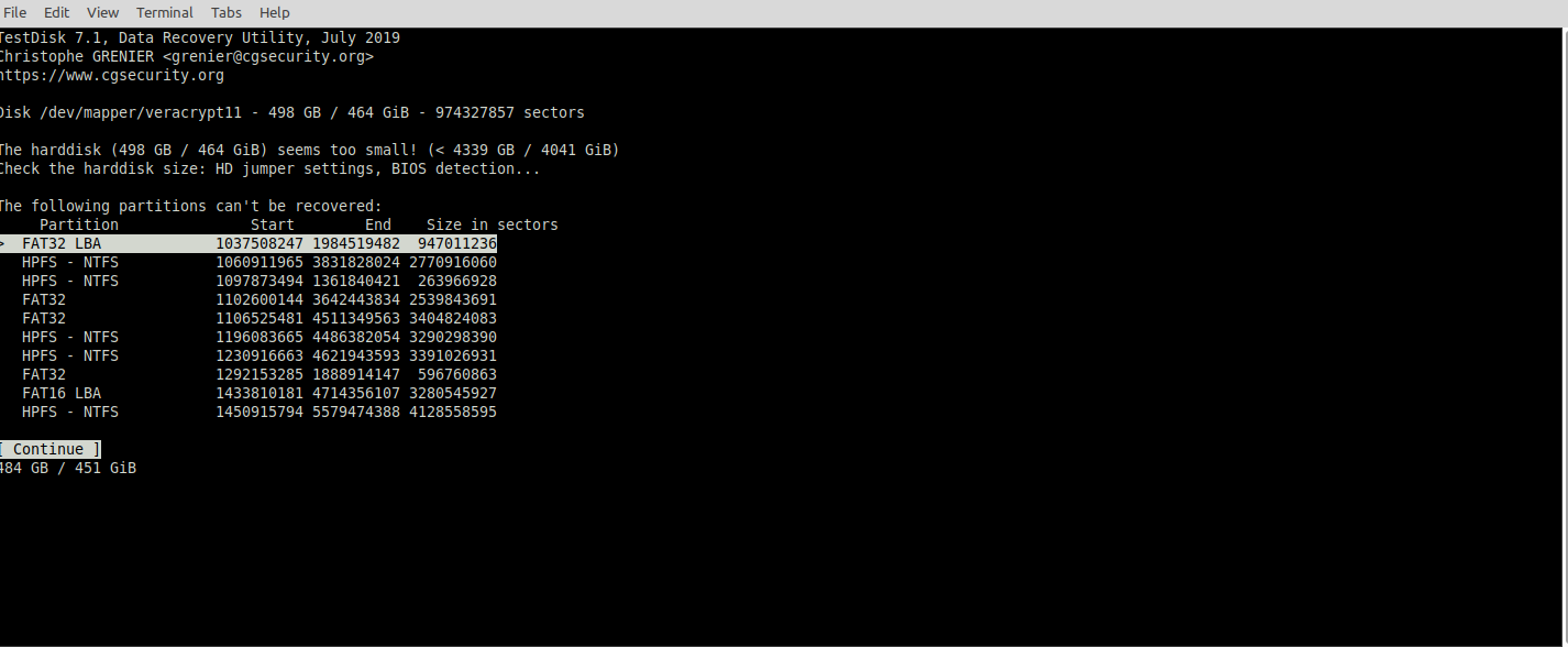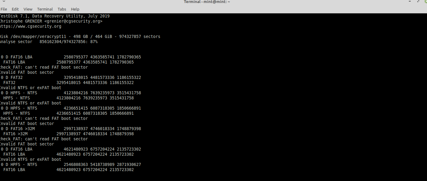 - Ich habe ausserdem Scans mit TestDisc durchgefuehrt fuer das sda4 Volumen (Bild 1) sowie fuer die entschluesselte Veracrypt Datei (Bild 2 und 3).