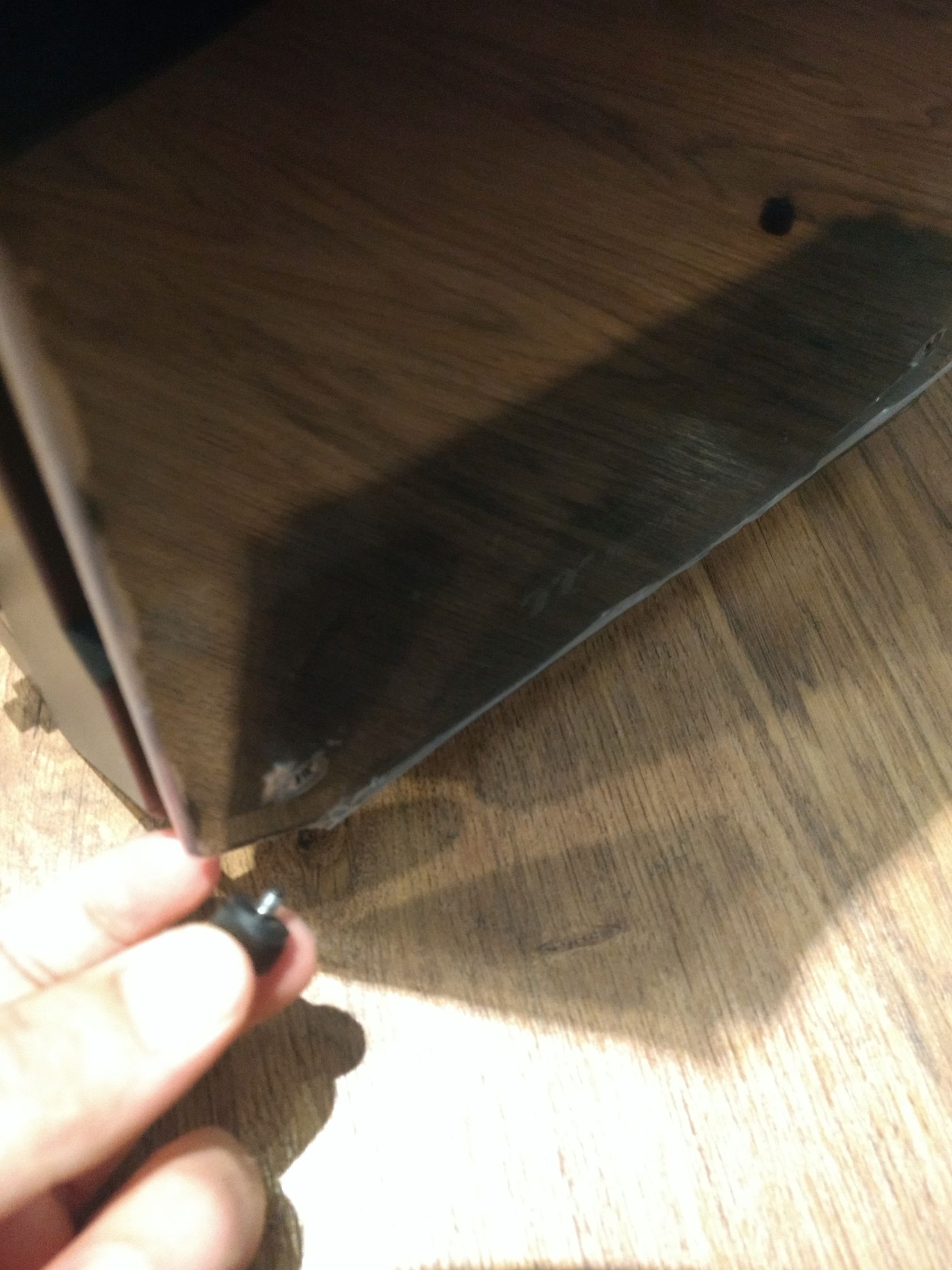 Dann machte ich die Glastüren auf und bei sämtlichen Nieten fehlte am Kopf der Lack so als hätte jemand per Hand alle Nieten ausgetauscht.
