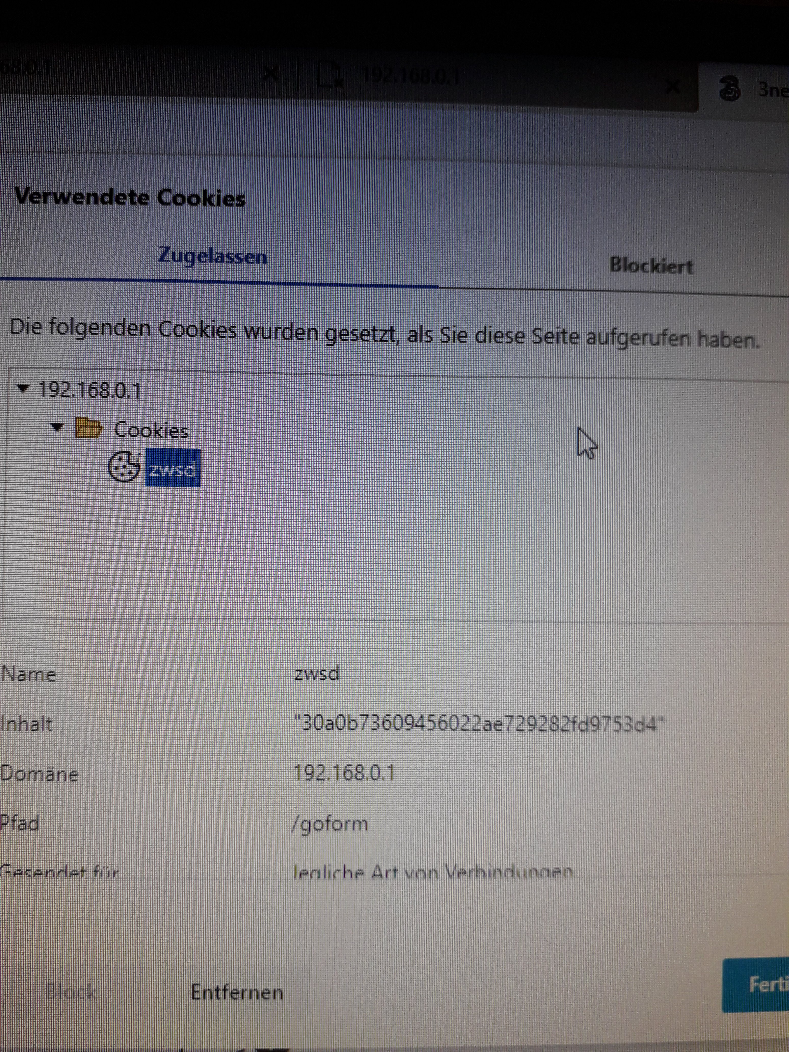 Es zeigte mir Cookies an . ( Cookies Name zwsd ) .