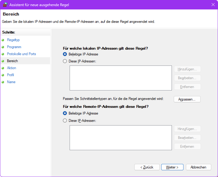 Ich zocke im Moment sehr gerne Chivalry 2. In der EU Region gibt es Server mit der Bezeichnung EU-West, London und Paris. Die besten vom Ping sind London und Paris. Das Matchmaking schickt mich aber leider häufig auf die EU-West Server. Ich hab mir die IPs der Server angeschaut und kann den Bereich der EU-West Server antizipieren. Ich würde gerne für das Spiel festlegen, dass dieser IP Bereich unerreichbar ist. Ist das möglich? Wenn ja wie?
