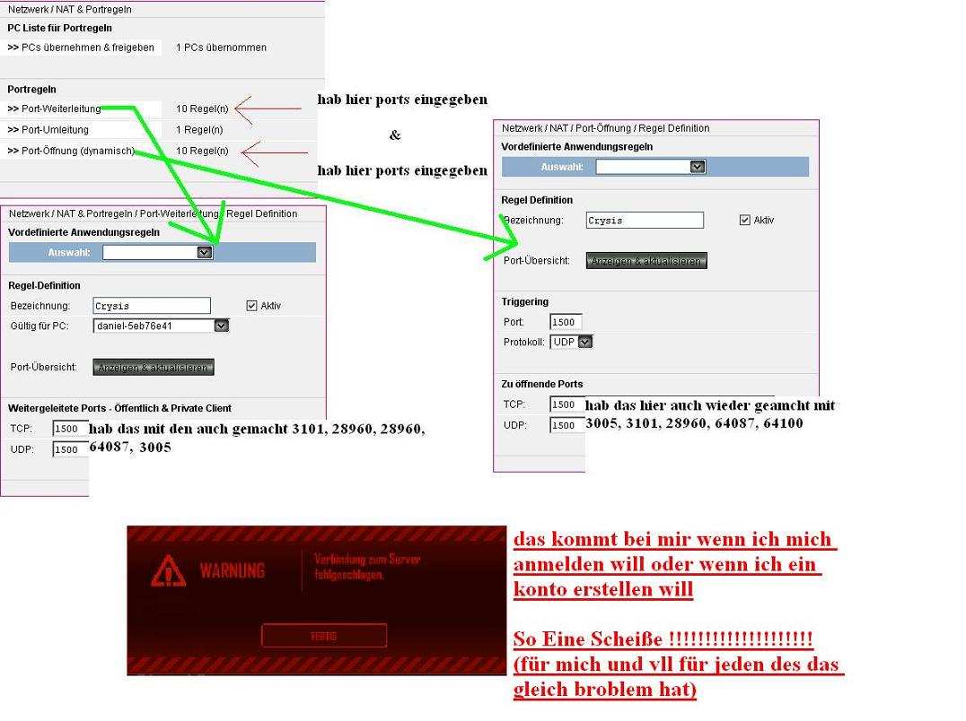 hm also die ports hat mir ein freud gegeben und fals da was falsch ist sagt bzw. schreibt es mir bitte und sagt mir auch was ich anders machen muss. falls jetz die frage kommt ob ich eine von 2 firewalls aus gemacht, ich hab nur eine die an ist.