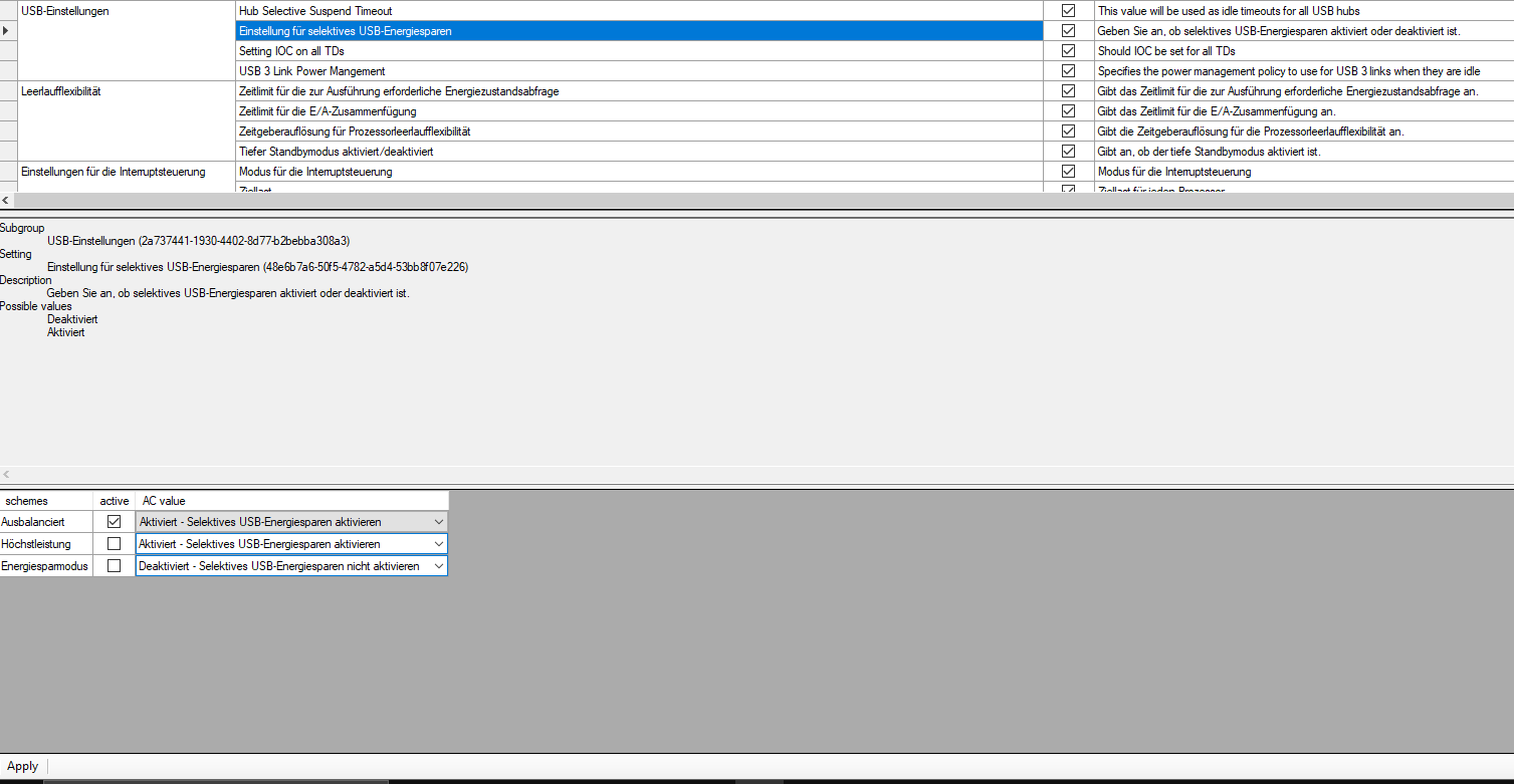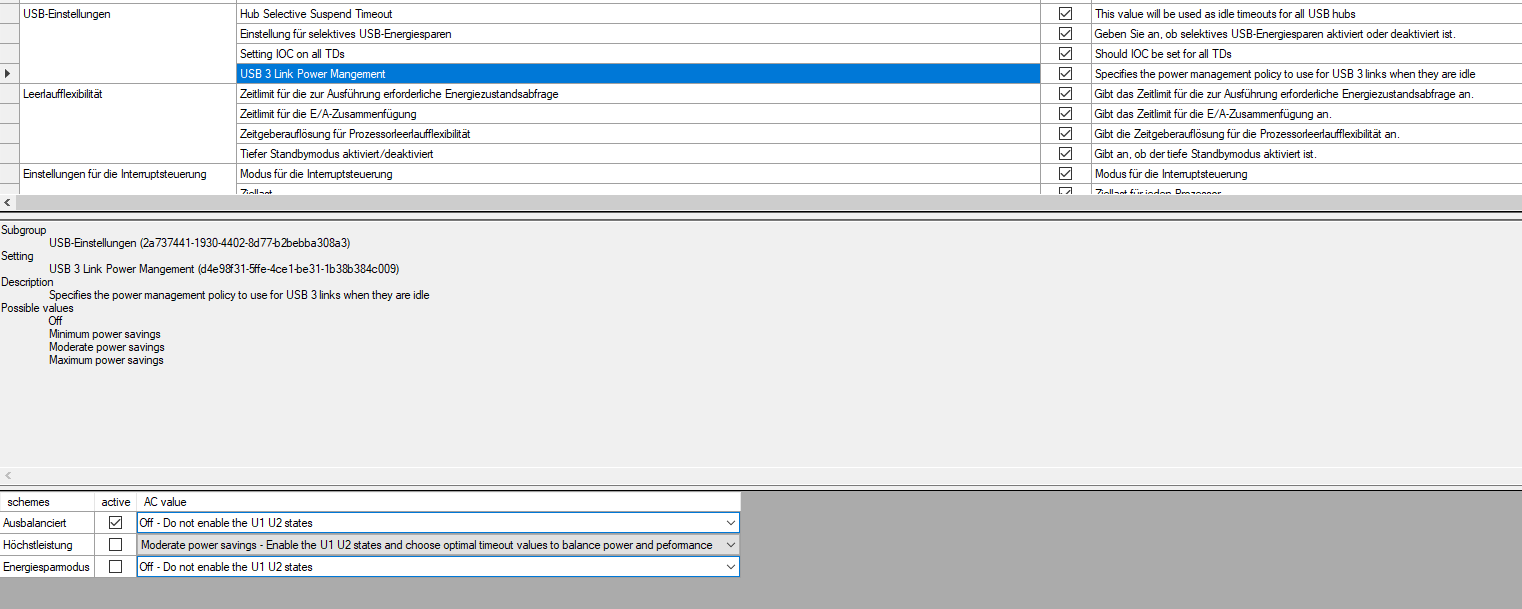 deaktiviert selektives usb sparen und usb3 powermanagement