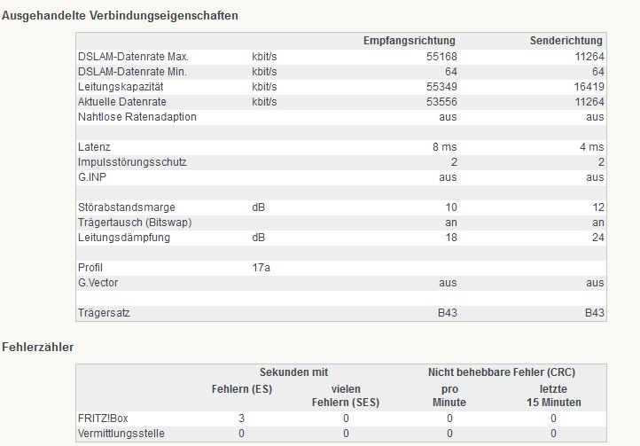 Siehe da, der DL wurde von 55,0 Mbit/s auf 49,3 Mbit/s. gedrosselt und die Latenz hat sich von 9ms auf 18 ms erhöht
