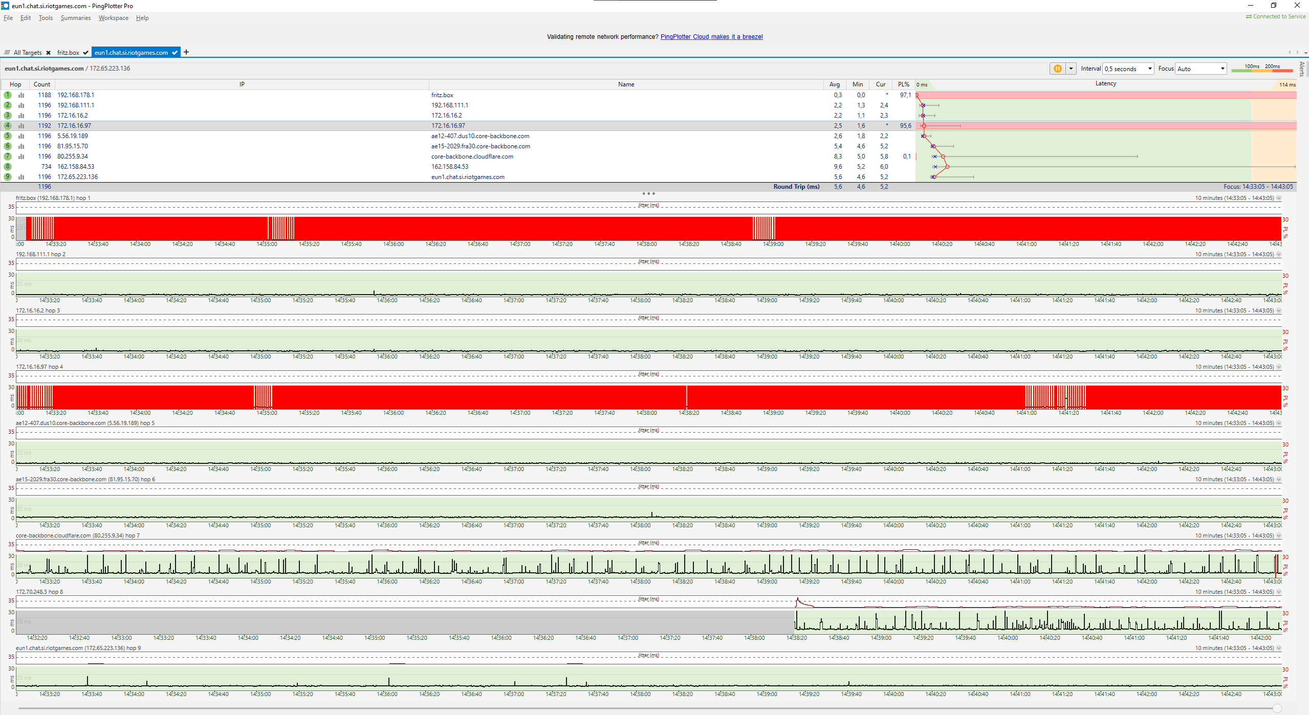 Das verwunderliche ist für mich, das ich im eigentlichen Sinne eine überaus stabile Verbindung habe: Keine Disconnects, sehr niedriger Ping in allen online games (6 - 20 ms) usw.