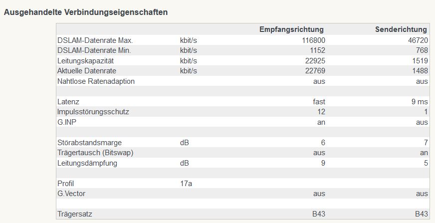 Zusatzfrage: Im Screen des Fritzbox-Menüs wird mir als DSLAM-Datenrate MAX: 116800 kbits angezeigt, bedeutet das, dass theoretisch auch DSL-100 möglich sein sollte? Der Verkäufer hatte dies beim letzten Gespräch ausgeschlossen.