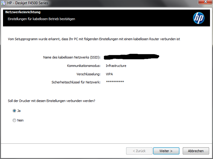 Ich habe seit einer Woche einen neuen WLAN-Router, da ich den Internetanbieter gewechselt habe. Im alten Netzwerk konnte ich den Drucker Problemlos mit dem WLAN verbinden.