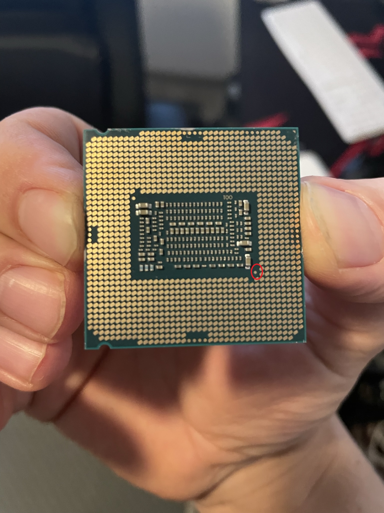 Jetzt habe ich eben mal die CPU demontiert und mir den Sockel genauer angesehen und bemerkt das unten rechts ein Pin "absteht"