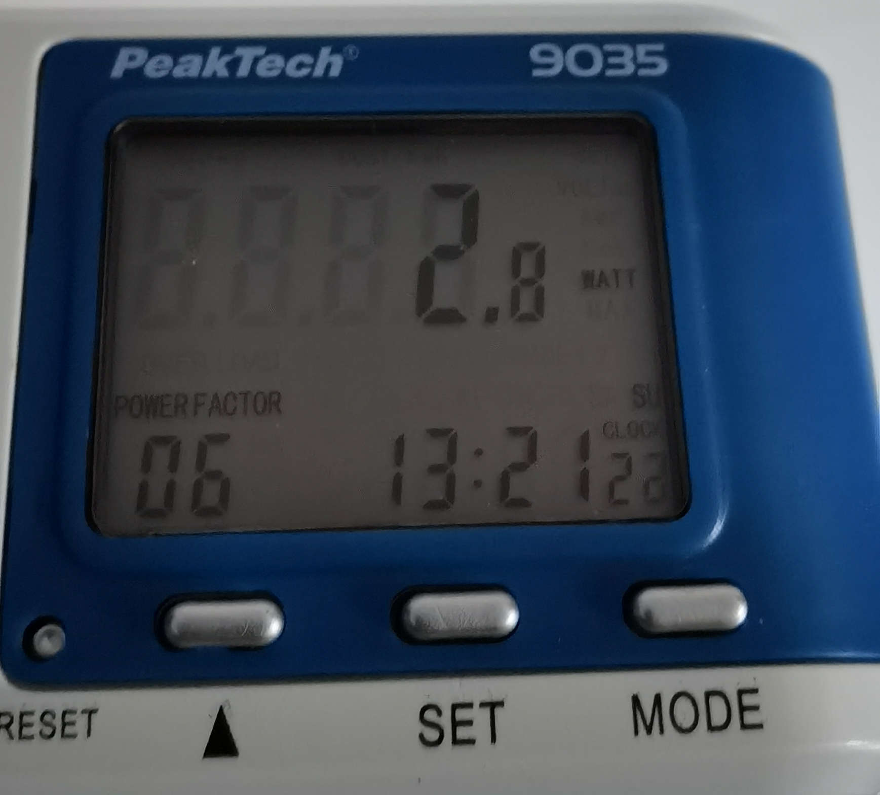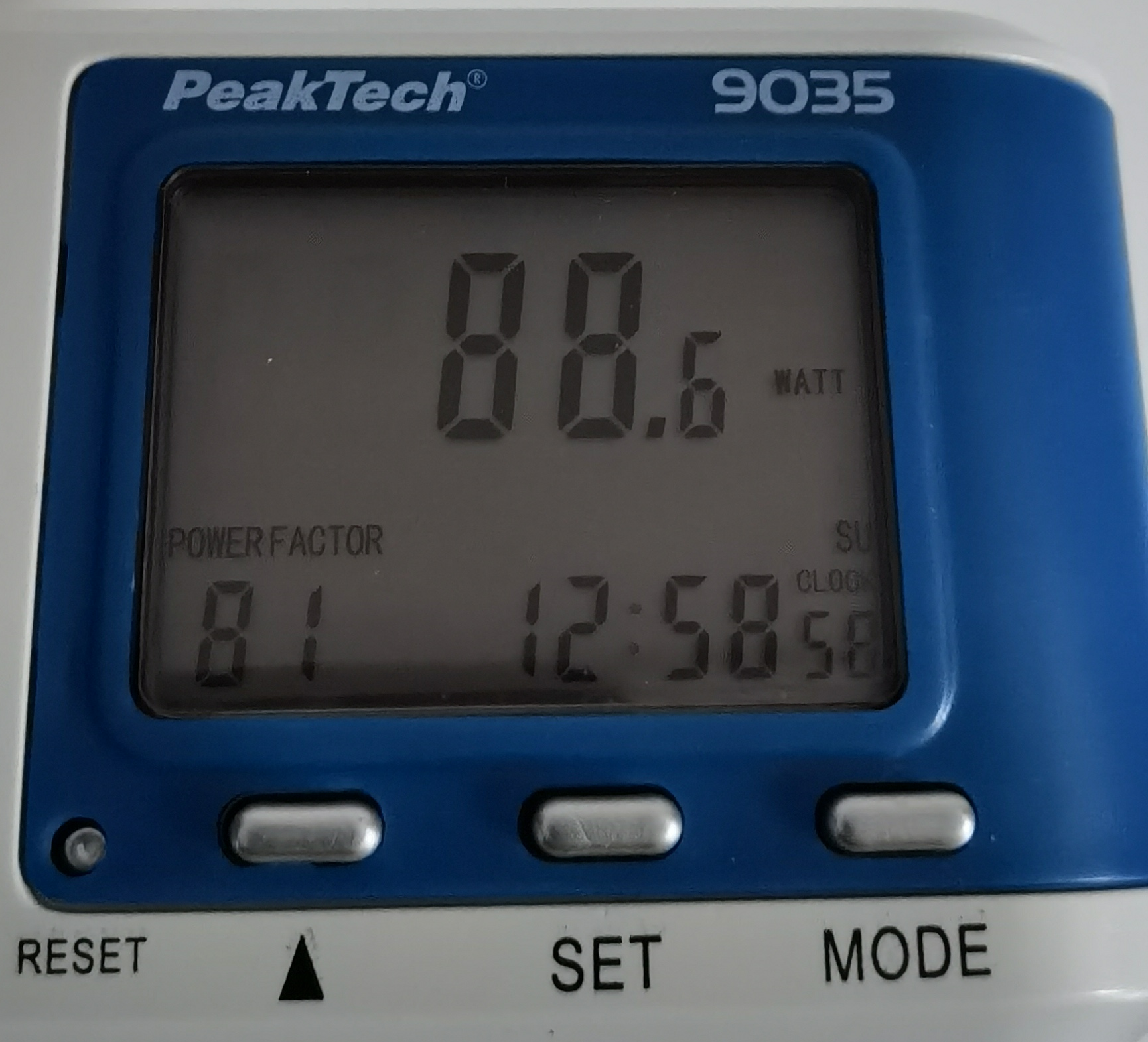 Aber da ich es nicht genau weiß und die Messung selbst über die Steckdose nicht 100% genau ist, rechne ich das nicht auch noch heraus.