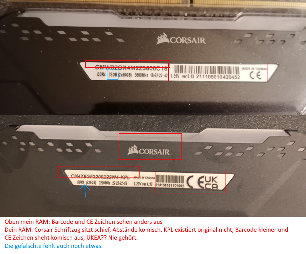 Wie gesagt habe ich den ram bei komplett gekauf. Die sind eigentlich sehr profissionell was pcs angeht und helfen gerne und gut leute mit problemen. Der ram war derzeit das erste mal das ich «Unangenehme» erfahrung gemacht habe. Kann ich irgendwas machen wen der Ram eine Fälschung ist? der Laden ist Offiziell hier in Norwegen/Skandinavien und ziemlich groß. gekauft wurde der PC am 3.9