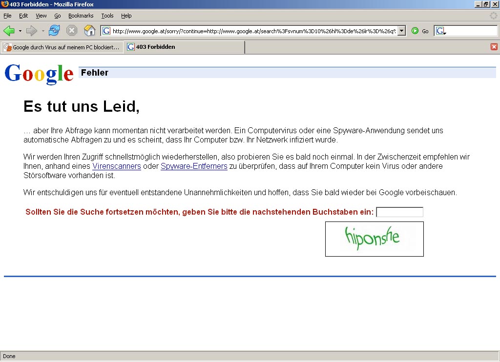 Seitdem spinnt der Rechner rum! Antivirenprogramme hatte ich zur Zeit der Infeszierung nicht drauf, mittlerweile schon.