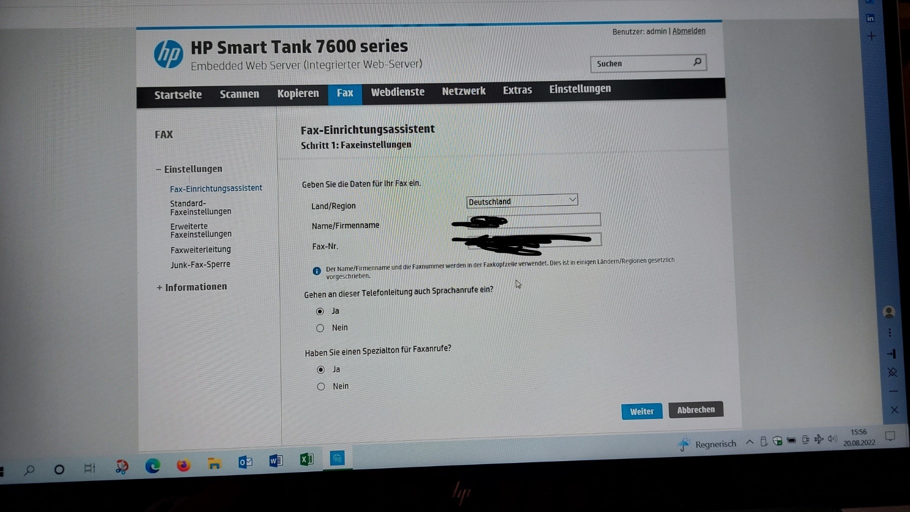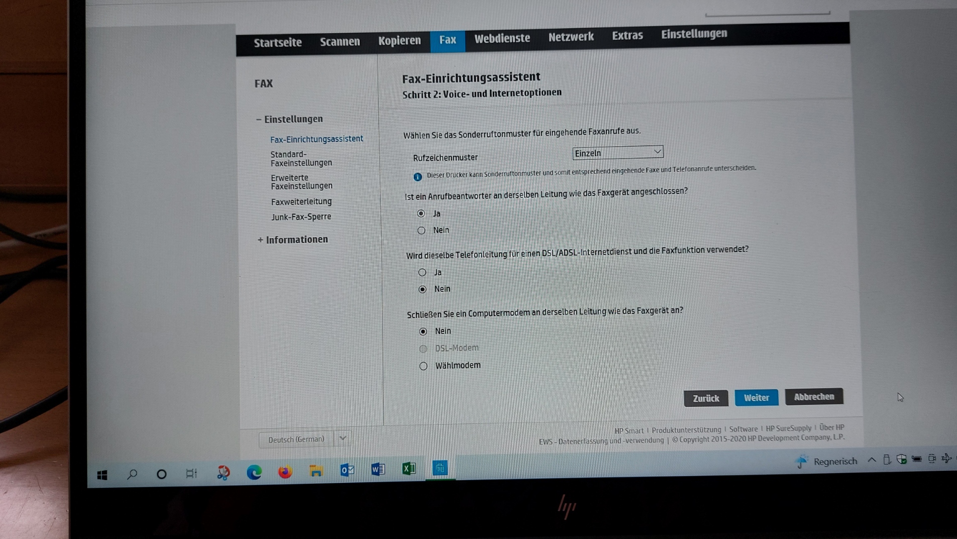 Genau so haben wir das neue HP7605 angeschlossen, aber dann ist das Telefon "tot". Wenn wir das Fax in der Telefonsteckdose abstecken funktioniert das Telefon wieder.