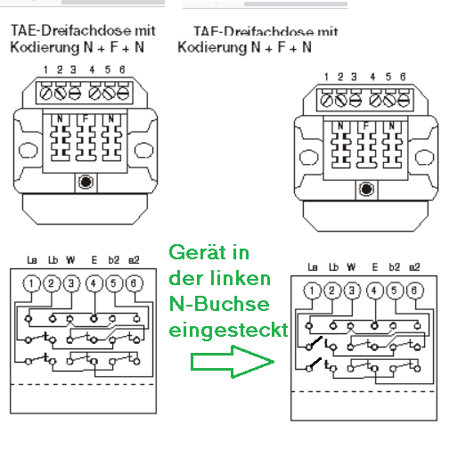 Habe eine Sache komplett vergessen, da wir unsere TK schon vor einer Ewigkeit mit einer Eumex auf einzelne Anschlüsse für jedes Endgerät umgerüstet haben.