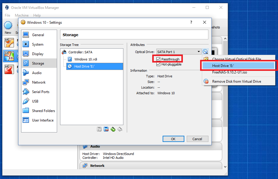 Eines der physischen Blu-Ray-Laufwerke des Hostrechners muss in der Virtualisierung voll verfügbar sein und für Software des Gastsystems als reales Laufwerk erscheinen.