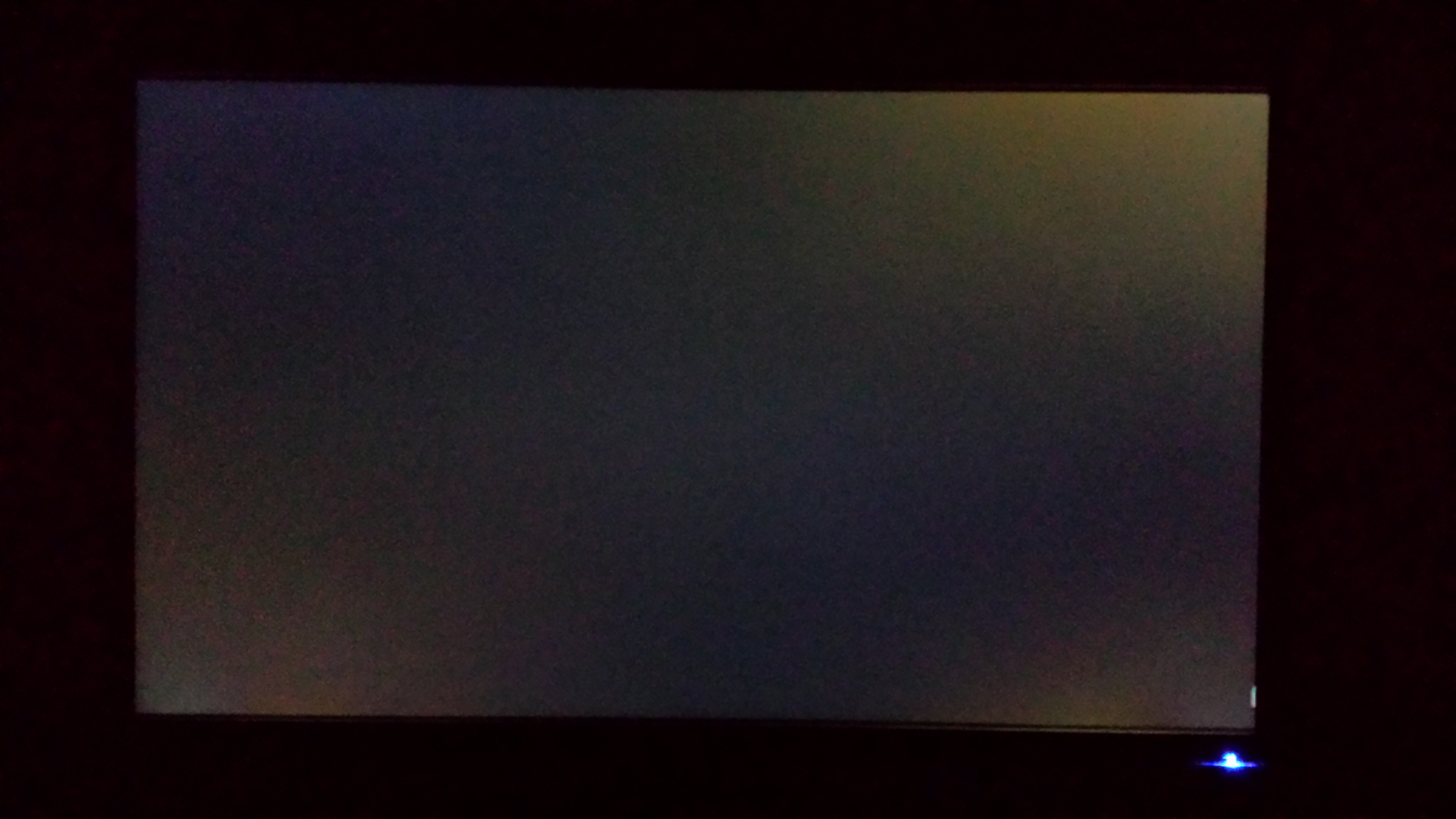 Für das extreme überstrahlen auf dem Screenshot aus Witcher 3 ist (zumindest teilweise) wohl der Effekt "Vignettierung" im Menü Nachbearbeitung verantworlich. Ich suche noch nach einer Szene, mit der ich es eindeutig belegen kann, da sowohl dieser Effekt, als auch alles andere, was ich bisher mit dem Monitor erlebt habe, recht abhängig vom Bildinhalt ist. Ich werde also das Erlebnis auf diesem Screenshot erstmal ignorieren. Probleme mit einzelnen Pixeln und Backlight bleeding hat der Monitor ohne Zweifel, hier nochmal ein Bild, diesmal vom no-sognal-screen bei wenig Licht aber nicht abgedunkelt: