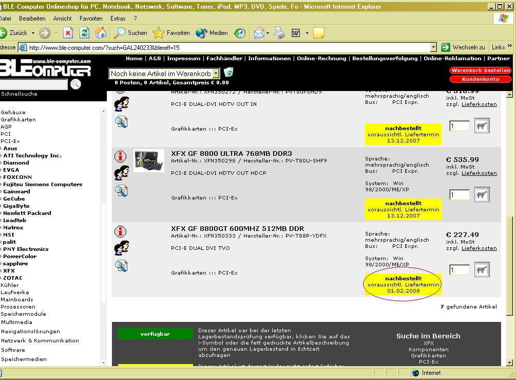 Na gut, dass ich damals meine Zotac storniert habe. Hätt jetzt viell. auch noch drauf gewartet. Aber zu euren Preisvorstellungen werdet ihr wahrscheinlich so schnell keine mehr kriegen. 250 - 300 Euro. Das wird am Ende der Preis sein, leider. Ich denke, die Gt´s die um die 200 gekostet haben, waren nur Lockangebote, danach ist ja der Preis bei einigen Anbietern in die Höhe geschnellt. Gut, dass ich meine hab und so viel langsamer wie ne Amp von Zotac is meine BFG auch nich. Werd aber um nen Lüfterwechsel nich drumrumkommen, weil, wenn die Karte zu tun hat, hört man das auch. Hab mit dem Experttool ma den Lüfter auf 100% geregelt....ca.4500u/min....