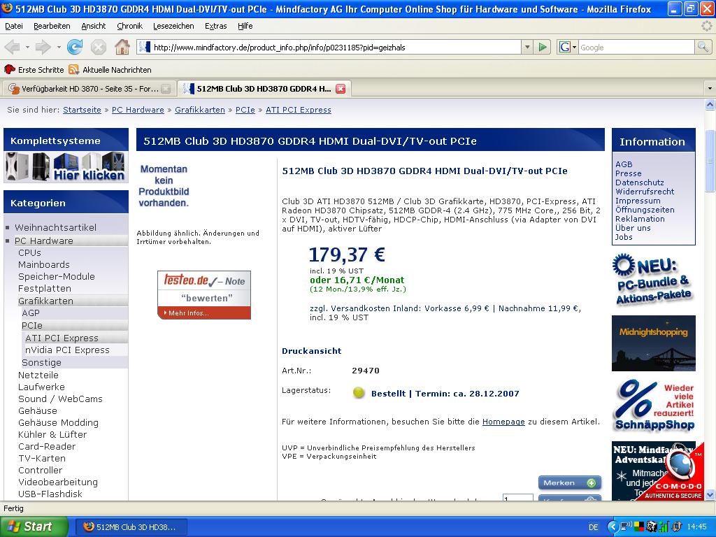 Also falls noch jemand überhaupt die 3870 will