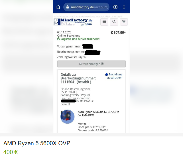 Hab meinen 5600x um 14:41 Uhr noch für 299€ bestellt.