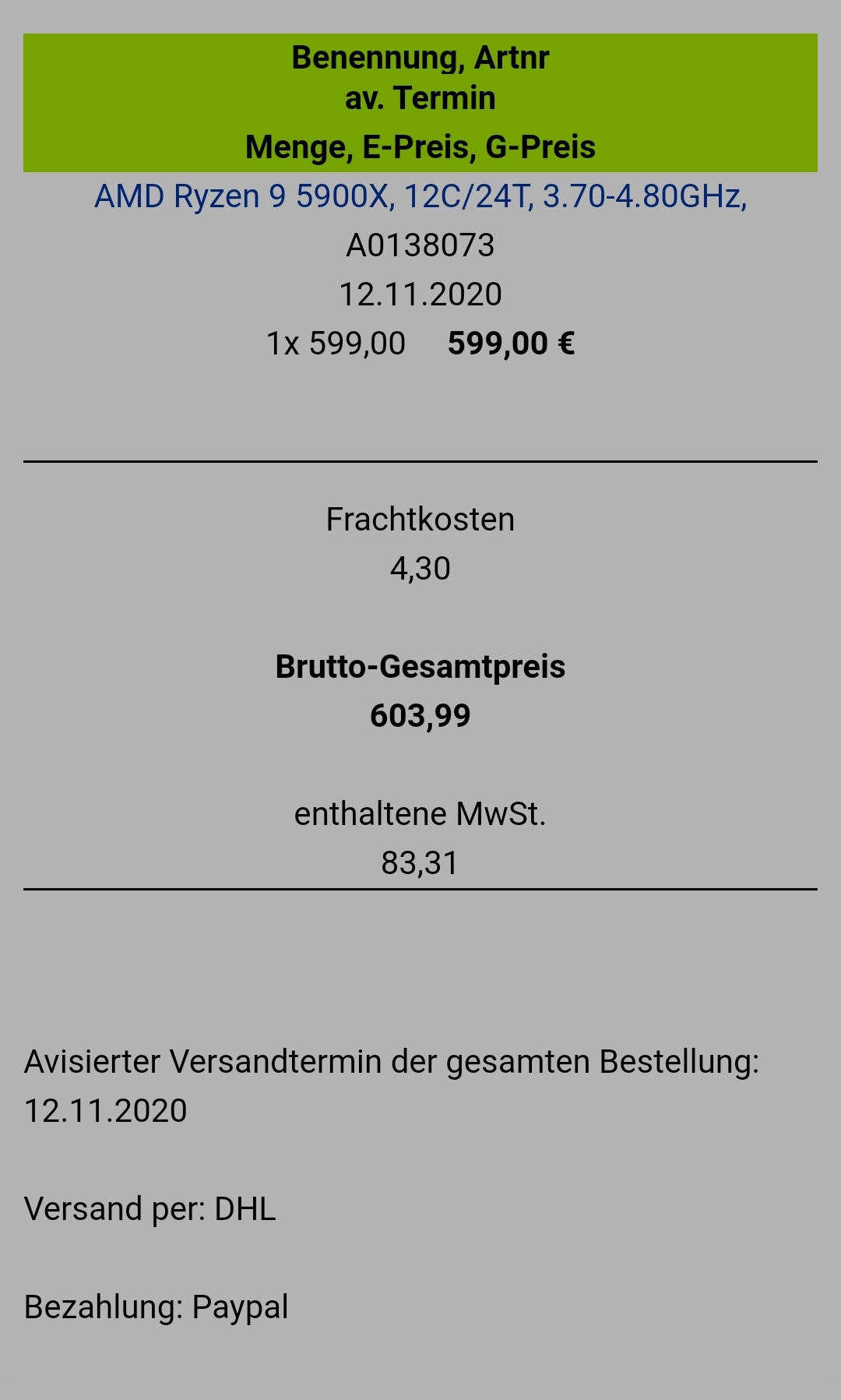 Ist alles etwas suspekt, denn bei Geizahls ist der 5900X bei CSV seit ca. 1h als verfügbar gelistet. Im Shop ist der 5900X nicht verfügbar.