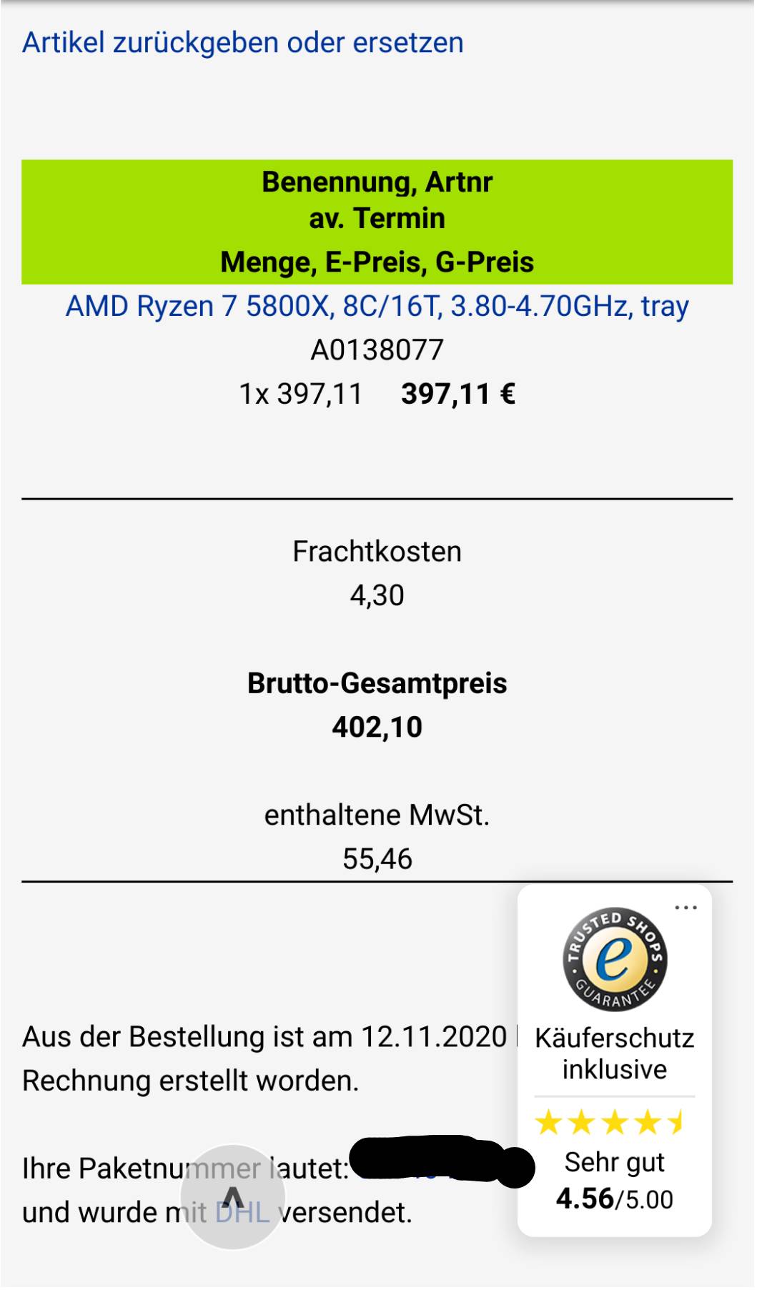 Siehe jetzt gerade über mir- Die Leute kaufen nen 5600x für 380,-€.