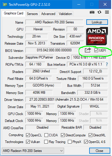 Alle Grafikkarten seit 2014 haben VBios mit UEFI-Support,