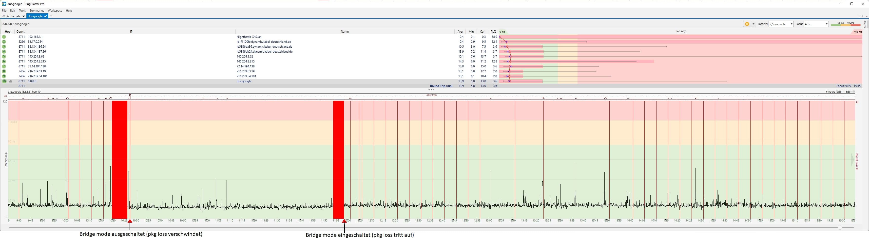 Ich wollte jetzt keinen professionellen Test machen, sondern nur kurz Unterschiede überprüfen. Daher sei mir verziehen, dass ich nicht per LAN und nur per Speedtestseiten und nicht per Netzwerkdiagnosetools den Durchsatz getestet habe. Die Ergebnisse sind auch so aussagekräftig genug.