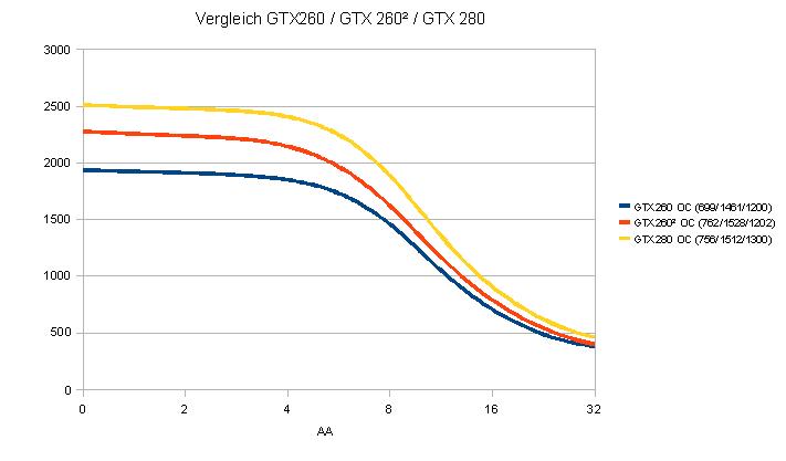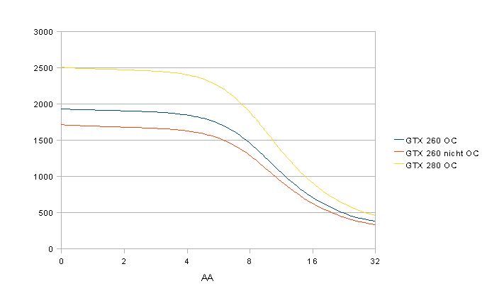 Ich werde dann das Diagramm mit beiden Karten im Vergleich hier posten, falls sich jemand dazu bereit erklärt, einen Benchmark mit einer GTX 280 zu machen.